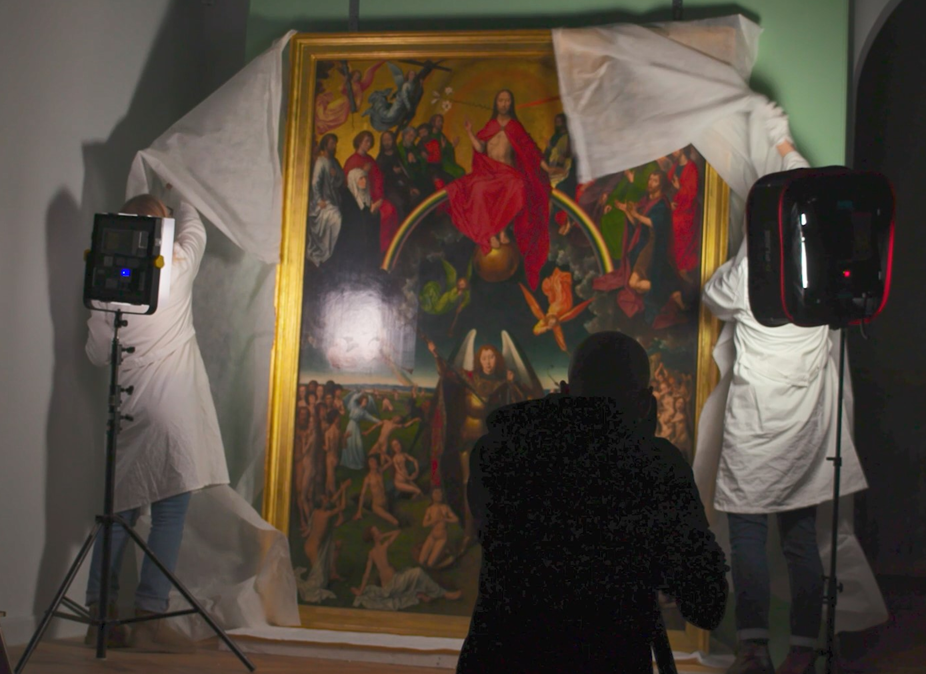 Lech Majewski’s triptych of video frescoes was created using footage filmed during the break in the exhibition caused by the Covid-19 pandemic. During this time, Hans Memling’s Last Judgement, the most famous piece in the collection of the National Museum in Gdańsk, was removed from its display case for a condition inspection. This presented the artist with a unique opportunity to examine the painting’s intricate details through the lens of his camera. Over the following years, Lech Majewski used the recorded material to create a narrative offering a powerful and moving vision of the Last Judgement, enriched with animation and sound effects. The result is a modern Biblia Pauperum—a living form that vividly brings to life the stories captured in the painting over 550 years ago. As viewers follow the camera’s gaze across the details of the triptych, they rediscover its intricate, multilayered narrative.